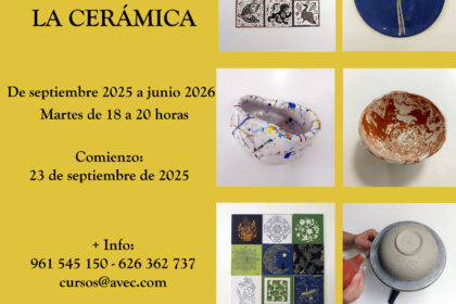 - Reservas: apuntarse llamando al teléfono 961 545 150, WhatsApp 626 362 737 o bien un email a cursos@avec.com, indicando nombre y apellidos, email y teléfono de contacto, indicando el nombre del curso («Curso iniciación a la cerámica adultos»)